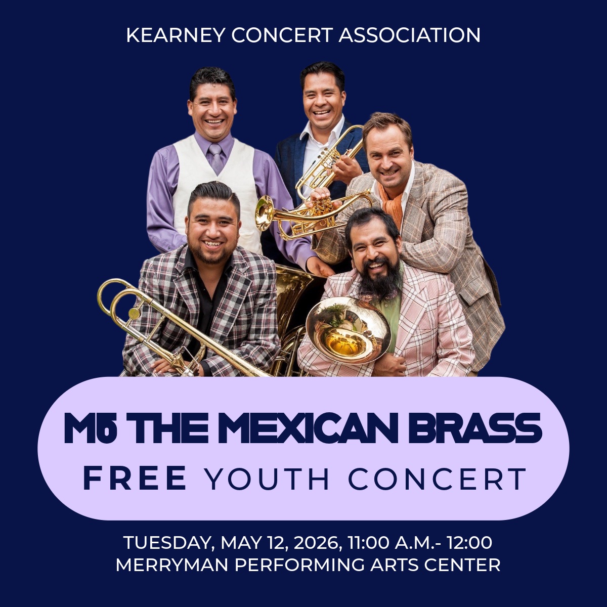 The Mexican Brass will be performing a FREE Youth Concert on Tuesday, May 12, 2026, 11:00 a.m. - 12:00 at the Merryman Performing Arts Center. Download a brochure